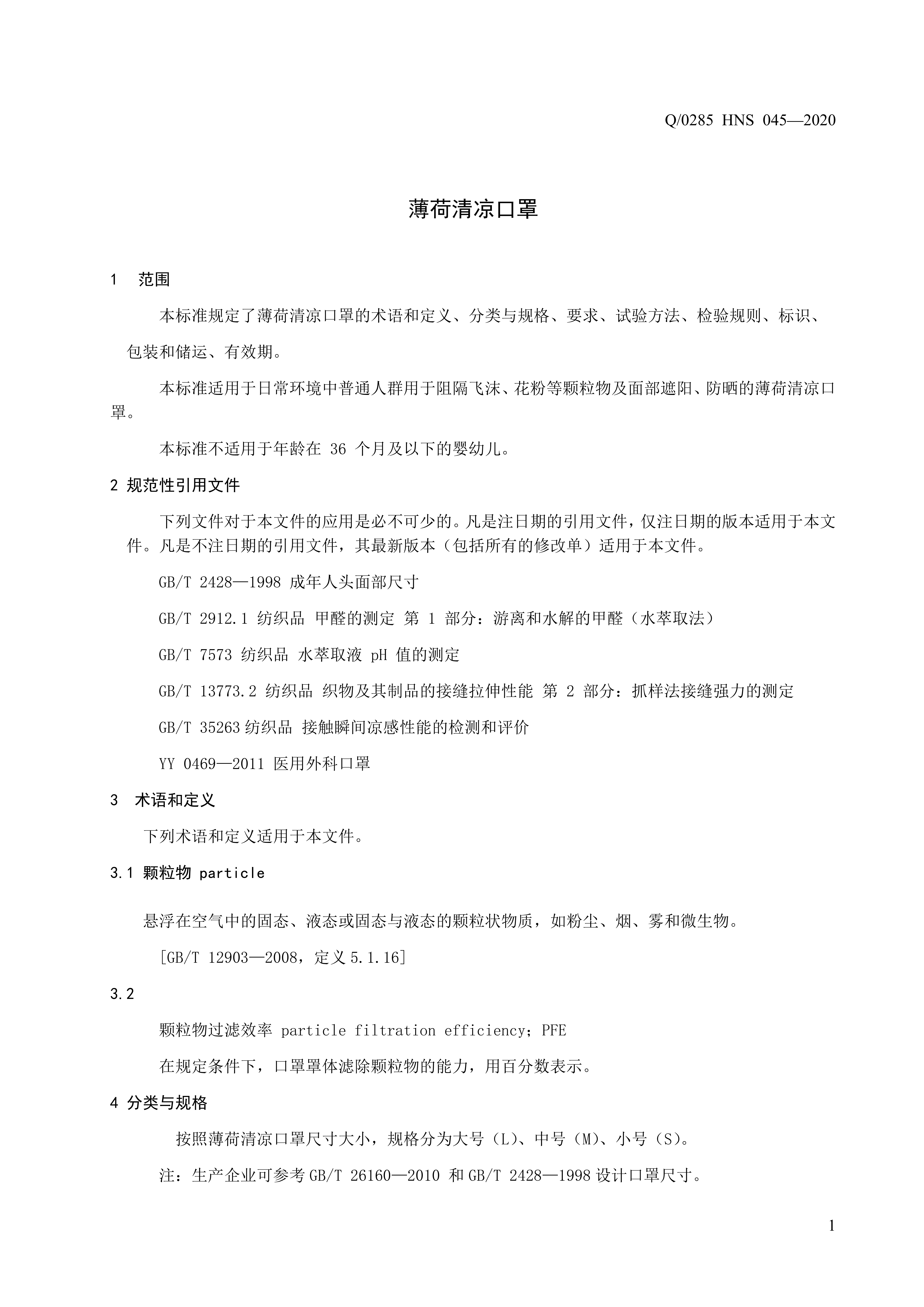 青島海諾生物工程有限公司企業(yè)標(biāo)準(zhǔn) — 薄荷清涼口罩